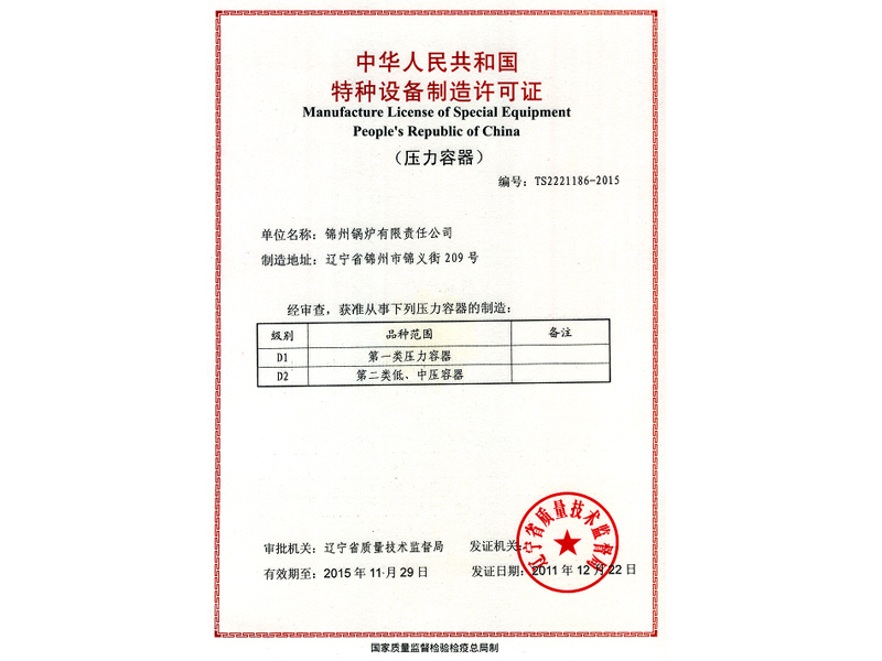 壓力容器特種設(shè)備制造許可證